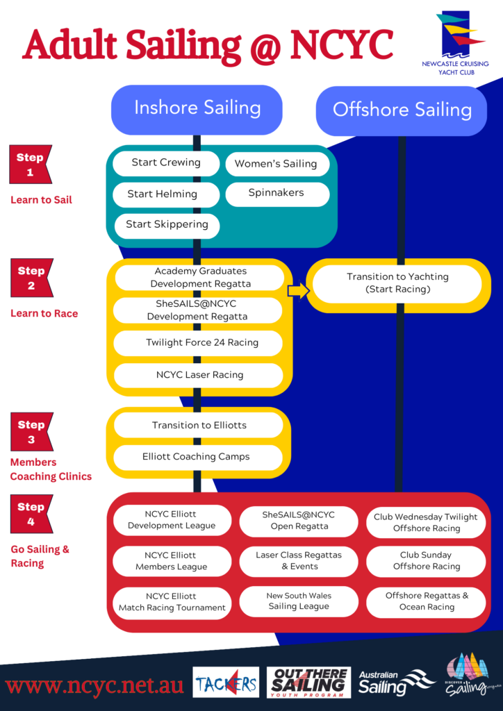 Whether you’re keen to head offshore on a yacht or are more interested in around-the-buoys racing within the Harbour, or even a bit of both . . . we have development programs to provide that pathway.